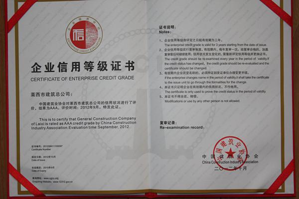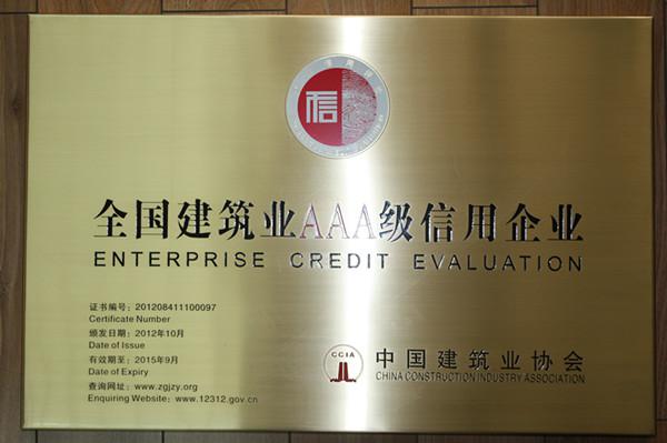 今年,我公司再次被評(píng)為全國建筑業(yè)AAA級(jí)信用企業(yè),這是總公司第二次獲此殊榮。