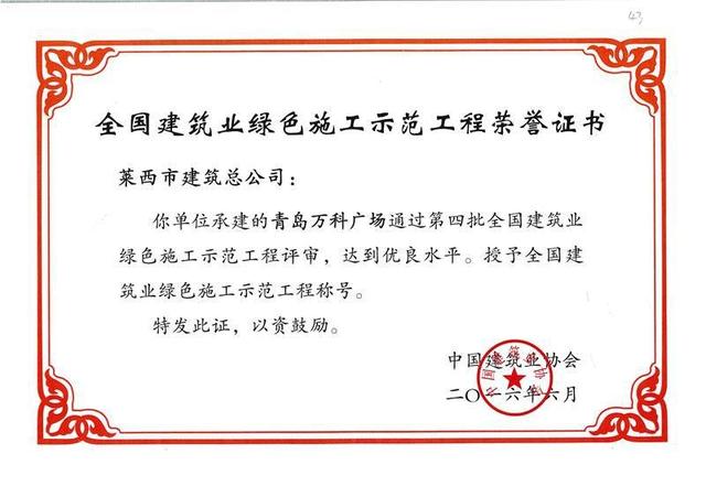 7月18-19日,中國建筑協(xié)會(huì)在北京召開全國建筑企業(yè)綠色施工經(jīng)驗(yàn)交流會(huì),對(duì)全國建筑企業(yè)綠色施工單位進(jìn)行通報(bào)表彰,我集團(tuán)第四批全國建筑業(yè)綠色施工示范工程:德國企業(yè)中心項(xiàng)目、青島萬科廣場(chǎng),獲頒榮譽(yù)證書、青島大學(xué)附屬醫(yī)院東區(qū)綜合病房樓項(xiàng)目、海韻新都2#、3#樓及光大國際工程,被評(píng)為“第五批全國建筑業(yè)綠色施工示范工程”??偛弥碇鼙怀鱿瘯?huì)議并領(lǐng)獎(jiǎng)。