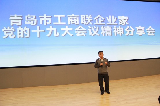 此次分享會(huì)之所以選在中德生態(tài)園有特殊的意義。青島市政協(xié)副主席、工商聯(lián)主席姜巧珍表示,為深入學(xué)習(xí)貫徹黨的十九大精神,深刻踐行《中共中央關(guān)于營(yíng)造企業(yè)家健康成長(zhǎng)環(huán)境弘揚(yáng)優(yōu)秀企業(yè)家精神更好發(fā)揮企業(yè)家作用的意見》的要求,青島工商聯(lián)要與企業(yè)家在認(rèn)真交流的基礎(chǔ)上,進(jìn)一步增加共識(shí),對(duì)十九大精神做深入淺出的理解,做到理論結(jié)合實(shí)際,而下基層,更接地氣,更易了解企業(yè)家心聲,也會(huì)更便于將黨的思想傳達(dá)進(jìn)企業(yè),帶領(lǐng)企業(yè)跟黨走,進(jìn)一步支持促進(jìn)民營(yíng)企業(yè)發(fā)展,激發(fā)保護(hù)企業(yè)家精神。
