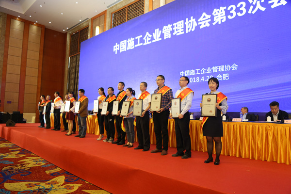 2018年4月20日上午,中國施工企業(yè)管理協(xié)會在合肥召開了第33次會員代表大會。中國施工企業(yè)管理協(xié)會會長曹玉書,中國施工企業(yè)管理協(xié)會副會長姚強,中國施工企業(yè)管理協(xié)會副會長張克華,中國施工企業(yè)管理協(xié)會副會長尤京等出席會議。會議由中國施工企業(yè)管理協(xié)會副會長、北京市建筑業(yè)聯(lián)合會會長欒德成主持。
