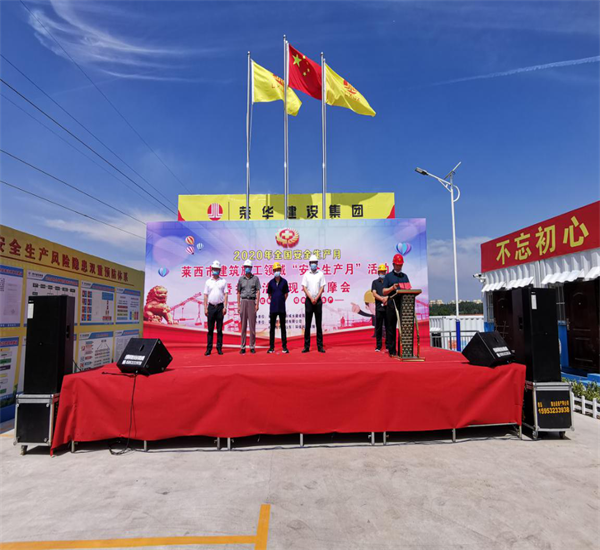 2020年6月22日,萊西市建筑施工領(lǐng)域“安全生產(chǎn)月”活動暨揚塵治理現(xiàn)場觀摩會在七公司徐明健項目部施工的萊西市人才公寓項目成功召開。萊西市住房和城鄉(xiāng)建設(shè)局于濤副局長、建筑企業(yè)服務(wù)中心王建學(xué)主任、青島昌陽投資開發(fā)有限公司劉浩部長等領(lǐng)導(dǎo)參會,集團公司副總裁周兵一出席活動并發(fā)表講話,市建筑企業(yè)服務(wù)中心監(jiān)督執(zhí)法人員及全市施工、建設(shè)、監(jiān)理單位分管負(fù)責(zé)人、項目經(jīng)理、項目總監(jiān)、安全員等共計230余人參加觀摩。