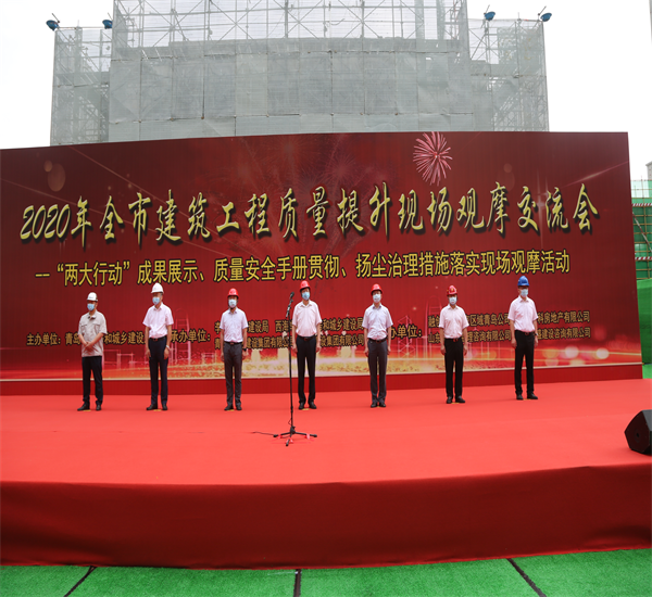 6月30日上午,2020年全市建筑工程質(zhì)量提升現(xiàn)場觀摩交流會暨“兩大行動”成果展示、質(zhì)量安全手冊貫徹、揚塵治理措施落實現(xiàn)場觀摩會在李滄區(qū)和西海岸新區(qū)同步召開,六公司陳顯峰項目部施工的萬科新都會二期項目成為觀摩會場。市住建局局長陳勇、副局長劉玉勇,李滄區(qū)委常委、副區(qū)長劉學(xué)輝,李滄區(qū)建設(shè)局局長周誠等市及各區(qū)市住建局主管部門、全市建筑工程質(zhì)量監(jiān)督機構(gòu)和部門建設(shè)、施工、監(jiān)理企業(yè)分管領(lǐng)導(dǎo)和質(zhì)量技術(shù)部門負(fù)責(zé)人、項目負(fù)責(zé)人按照疫情防控要求分時間,分批次參加了現(xiàn)場會。集團(tuán)公司董事長孫涌出席主會場觀摩會并致辭,副總裁周兵一、副總裁兼北方公司總經(jīng)理劉世海、六分公司總經(jīng)理丁秀爭陪同參會。