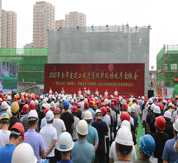 孫涌董事長在致辭中強調(diào)一是要堅持“兩大行動”的常態(tài)化管理、二是要全面貫徹落實質(zhì)量安全手冊、三是要強化施工現(xiàn)場揚塵治理。并代表青島市建筑業(yè)協(xié)會發(fā)起倡議,積極完善各責(zé)任主體質(zhì)量安全責(zé)任制度,提高企業(yè)質(zhì)量、安全管理水平,推廣應(yīng)用滲漏、開裂專項治理與揚塵防控創(chuàng)新陳國,共同推進(jìn)青島市建筑業(yè)健康、持續(xù)、高質(zhì)量發(fā)展。