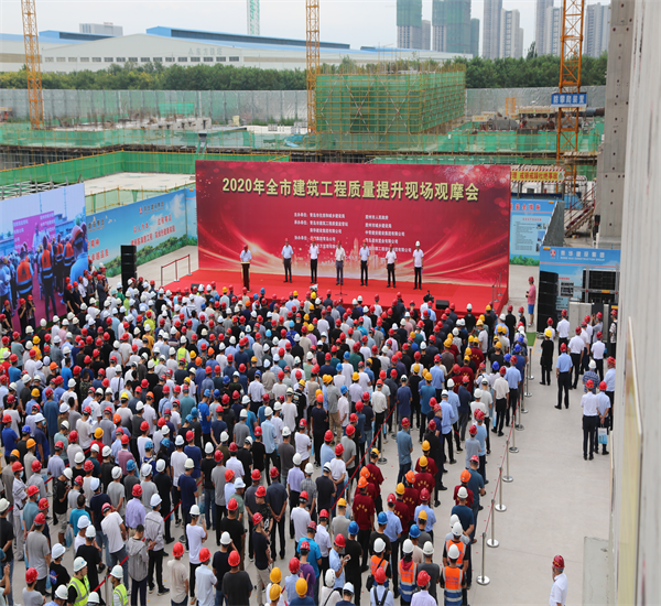 為深入推進(jìn)住建系統(tǒng)“質(zhì)量月”活動(dòng),進(jìn)一步提升全市建筑工程質(zhì)量水平,9月8日上午,青島市住房和城鄉(xiāng)建設(shè)局在膠州上合示范區(qū)召開2020年全市建筑工程質(zhì)量提升現(xiàn)場(chǎng)觀摩會(huì)。市及各區(qū)市住房和城鄉(xiāng)建設(shè)主管部門、全市建筑工程質(zhì)量監(jiān)督機(jī)構(gòu)和建設(shè)、施工、監(jiān)理企業(yè)項(xiàng)目負(fù)責(zé)人、質(zhì)量技術(shù)負(fù)責(zé)人代表等1000余人參加了此次觀摩會(huì)。青島市住房城鄉(xiāng)建設(shè)局副局長(zhǎng)劉玉勇,膠州市政府黨組成員劉寶剛,我集團(tuán)公司董事長(zhǎng)孫涌分別進(jìn)行了發(fā)言致辭,觀摩會(huì)由市質(zhì)監(jiān)站站長(zhǎng)孫雷主持。 此次觀摩會(huì)設(shè)立主會(huì)場(chǎng)和分會(huì)場(chǎng),主會(huì)場(chǎng)設(shè)在由我公司施工的龍湖·上合壹號(hào)項(xiàng)目。觀摩現(xiàn)場(chǎng)采用結(jié)構(gòu)工程實(shí)體質(zhì)量展示樣板、圖文宣傳板等方式進(jìn)行展示,該項(xiàng)目突出了質(zhì)量管理,全面展示了新材料、新做法,展示了“兩大行動(dòng)”專項(xiàng)治理攻堅(jiān)優(yōu)秀成果。以“質(zhì)量策劃、樣板引路、過程檢查、質(zhì)量活動(dòng)、成品保護(hù)”五到位為核心,輔以“微信+”質(zhì)量管理系統(tǒng),全面提升質(zhì)量管控水平。該項(xiàng)目突出了綠色施工,項(xiàng)目圍繞揚(yáng)塵治理“六項(xiàng)措施”,實(shí)施綠色施工技術(shù)20余項(xiàng),包括道路噴淋、遠(yuǎn)程噴淋、樓層噴淋、洗車機(jī)、霧化降塵盤、環(huán)場(chǎng)霧化、建筑垃圾垂直運(yùn)輸通道等多種降塵抑塵措施,構(gòu)筑起施工現(xiàn)場(chǎng)揚(yáng)塵治理的多道防線,真正做到現(xiàn)場(chǎng)整潔無揚(yáng)塵、節(jié)能環(huán)保無污染。該項(xiàng)目突出了智慧工地,項(xiàng)目通過全場(chǎng)區(qū)視頻監(jiān)控系統(tǒng)、門禁系統(tǒng)、無人機(jī)遠(yuǎn)程監(jiān)控、BIM全過程應(yīng)用、VR實(shí)景體檢、紅外感應(yīng)自動(dòng)沖洗設(shè)備等先進(jìn)技術(shù)的綜合應(yīng)用,全面提升現(xiàn)場(chǎng)作業(yè)人員工作效率。該項(xiàng)目突出了安全管理,以“安全責(zé)任優(yōu)先制”為原則,全面推行安全標(biāo)準(zhǔn)化、信息化,強(qiáng)化安全教育培訓(xùn),打造品質(zhì)安全型施工現(xiàn)場(chǎng)。 本次觀摩共包含4大主要內(nèi)容:1、原始樣板;2、工序樣板;3、粗裝修樣板;4、交付樣板。共應(yīng)用《青島市住宅工程滲漏、開裂專項(xiàng)治理兩大行動(dòng)優(yōu)秀創(chuàng)新做法圖文集》中的34項(xiàng)內(nèi)容,分別展示了在外墻、外窗、墻體等重要工序施工過程中所采取的涉及“防滲漏、防開裂”的有效措施及創(chuàng)新做法。加強(qiáng)了青島市建筑行業(yè)的內(nèi)部交流,提升了施工管理人員的質(zhì)量意識(shí)。 2020年山東省“質(zhì)量月”活動(dòng)已經(jīng)啟動(dòng),今年“質(zhì)量月”活動(dòng)主題是“物聯(lián)世界質(zhì)量強(qiáng)省”?!拔锫?lián)網(wǎng)+質(zhì)量”日益成為持續(xù)推進(jìn)質(zhì)量提升和品牌創(chuàng)新的重要手段。 與會(huì)人員在講解員的引導(dǎo)下,分批有序進(jìn)行了參觀,認(rèn)真學(xué)習(xí)了現(xiàn)場(chǎng)展示的“兩大行動(dòng)”創(chuàng)新成果、施工揚(yáng)塵治理措施以及企業(yè)開展工作的經(jīng)驗(yàn),參會(huì)人員對(duì)該項(xiàng)目的安全生產(chǎn)管理及揚(yáng)塵治理工作給予了較高評(píng)價(jià)。我集團(tuán)公司將以此次觀摩會(huì)為新起點(diǎn),進(jìn)一步總結(jié)經(jīng)驗(yàn),進(jìn)一步創(chuàng)新思維,進(jìn)一步激發(fā)活力,用高質(zhì)量建造為打贏十五個(gè)攻勢(shì)貢獻(xiàn)自己應(yīng)有的力量,為島城人民建設(shè)更好的明天。