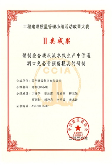 9月28日,中國(guó)建筑業(yè)協(xié)會(huì)公布2020年度工程建設(shè)優(yōu)秀質(zhì)量管理小組活動(dòng)成果大賽名單,集團(tuán)公司獲Ⅱ類(lèi)成果1項(xiàng):建科QC小組-預(yù)制疊合樓板流水線生產(chǎn)中管道洞口免套管預(yù)留模具的研制,獲Ⅲ類(lèi)成果1項(xiàng):中英創(chuàng)新產(chǎn)業(yè)園項(xiàng)目QC小組-提高被動(dòng)式超低能耗建筑坡屋面保溫施工質(zhì)量。