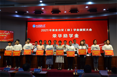 合作發(fā)展處處長、基金會副理事長、秘書長王曉東宣讀了《關(guān)于表彰2021年度“榮華獎學金”獲獎學生的決定》,與會領(lǐng)導(dǎo)為獲獎學生頒獎并合影留念。獲獎學生代表表達了對榮華建設(shè)集團和學校的感激之情,表示會再接再厲,再創(chuàng)佳績。
