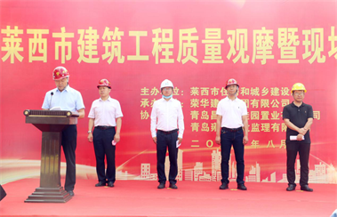 8月16日,“萊西市建筑工程質(zhì)量觀摩會暨現(xiàn)場專題會議”在七公司魏玉剛項(xiàng)目部施工的萊西碧桂園東城時代項(xiàng)目成功召開。萊西市副市長吳法先、市城建局局長于勝、集團(tuán)公司副總裁周兵一、吳克祥、七公司總經(jīng)理仲濤等領(lǐng)導(dǎo)出席本次觀摩會。萊西市城鄉(xiāng)建設(shè)局領(lǐng)導(dǎo),建設(shè)、施工、監(jiān)理主要負(fù)責(zé)人、技術(shù)人員,各專業(yè)分包、勞務(wù)分包企業(yè)單位相關(guān)人員共200余人參會。
