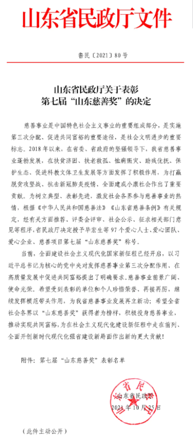 喜訊!董事長(zhǎng)孫涌同志被中華慈善總會(huì)授予“愛(ài)心企業(yè)家”集團(tuán)公司榮獲第七屆“山東慈善獎(jiǎng)”