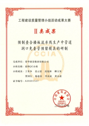 9月28日,中國建筑業(yè)協(xié)會公布2020年度工程建設(shè)優(yōu)秀質(zhì)量管理小組活動成果大賽名單,集團公司獲Ⅱ類成果1項:建科QC小組-預制疊合樓板流水線生產(chǎn)中管道洞口免套管預留模具的研制,獲Ⅲ類成果1項:中英創(chuàng)新產(chǎn)業(yè)園項目QC小組-提高被動式超低能耗建筑坡屋面保溫施工質(zhì)量。